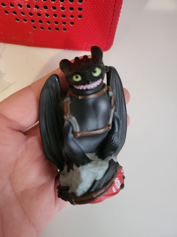 Toniebox 1 , état satisfaisant la boite est un peu abîmé mais elle fonctionne très bien Vendu avec le chargeur d'origine et 3 tonies neuf FRANÇAIS Petit ours brun neuf, Krokmou histoires de dragon neuf, et un Tonie creatif encore dans l'emballage Nous avons renouveller les tonies mais notre fils ne l'utilise plus