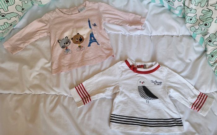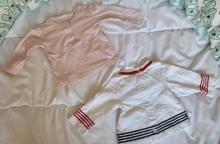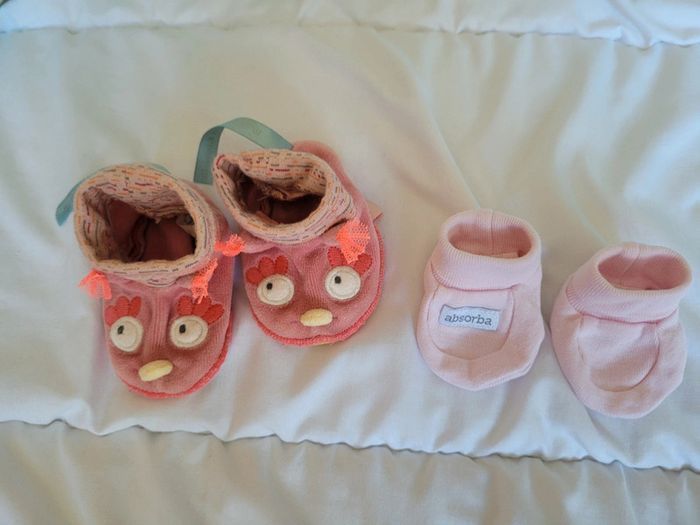 Joli lot bébé fille en taille 1 mois. Attention les 3 brassières ne sont plus dans le lot. Déjà vendues. - 1 paire de chaussons absorba en coton. Achetés neufs, portés 1 fois (cause pieds larges 😆). Le tissu peut se remonter ou non à la cheville. État quasi neuf - pantalon sarouel qui taille correctement. Doublé, donc chaud. Marque Tape à l'œil, 1 mois = 53 cm. Très bon état. Il est réglable à la taille et aux chevilles (voir les photos) - ce qui permet de l'adapter à la taille du bébé. - 1 T-shirt, motif chouette, qui s'ouvre complètement derrière grâce à des pressions. Petit col avec un noeud rouge. Petit point de couture suite à un accroc (voir la photo) qui ne se voit pas porté. Marque Orchestra. - 1 t-shirt à manches longues, rose avec un motif de "mouk" , qui s'ouvre à l'arrière grâce à 3 pressions. Marque la redoute Baby. TRÈS bon état. - 1 paire de chaussettes roses OFFERTE. Marque I love soxo. - des Adorables chaussons De naissance de la marque Moulin Roty. Hauteur réglable à la cheville grâce au tissu stretch qui se déroule. Petite chouette rose modèle "Mademoiselle et Ribambelle" avec un bec en pompon, des yeux brodés et des oreilles avec tulle. Dessous tissu également, jaune à pois blanc. 0/6mois. - Bonnet tout doux et tout chaud. Taille 0/1 mois et au-delà selon la taille de la tête de votre bébé. Il ferme par lanières à scratchs. Animal gris noeud rose.Excellent état. Porté quelques fois. Marque Orchestra. 2 paires de chaussettes roses offertes. #T1_3mois_baptlily #Chaussures_baptlily #accessoires_baptlily #T9_12mois_baptlily