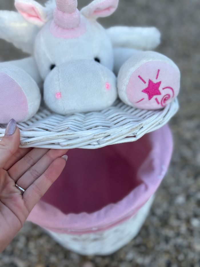 Panier de rangement , panier à doudou , panier e linge licorne 🦄 En très bon état à peine usé devant voir photo ! Envoi rapide et soigner 🌸