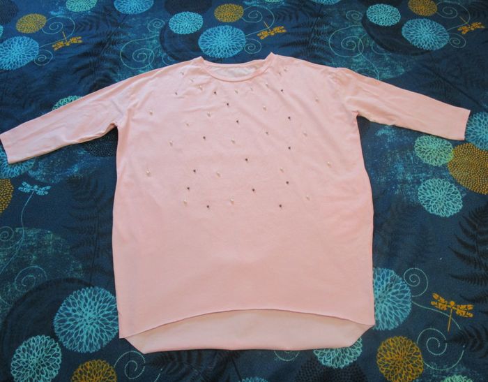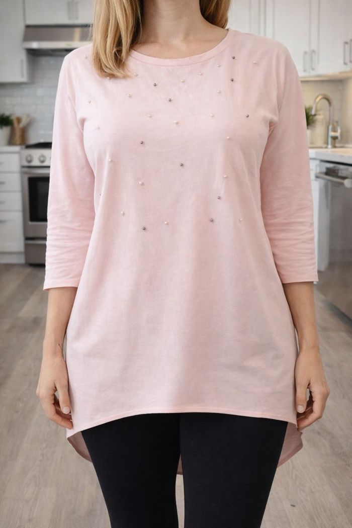 Tunique ample Pull large Femme manche mi-longue Perle cousu Coton Taille Unique Rose (F612) - photo numéro 1