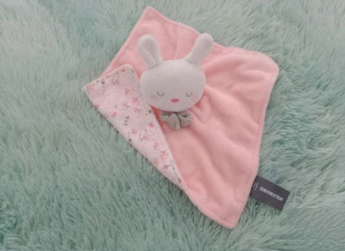 Doudou orchestra Lapin rose avec noeud vert Comme neuf