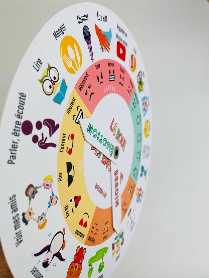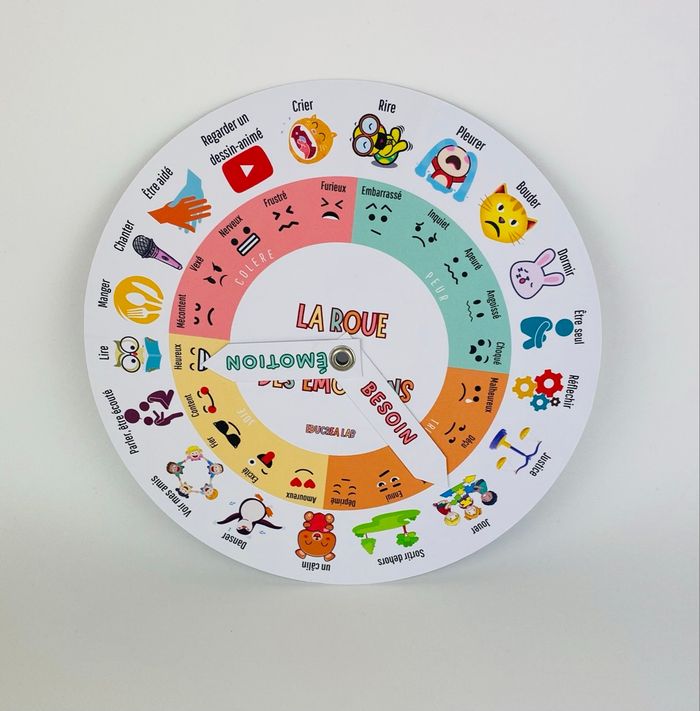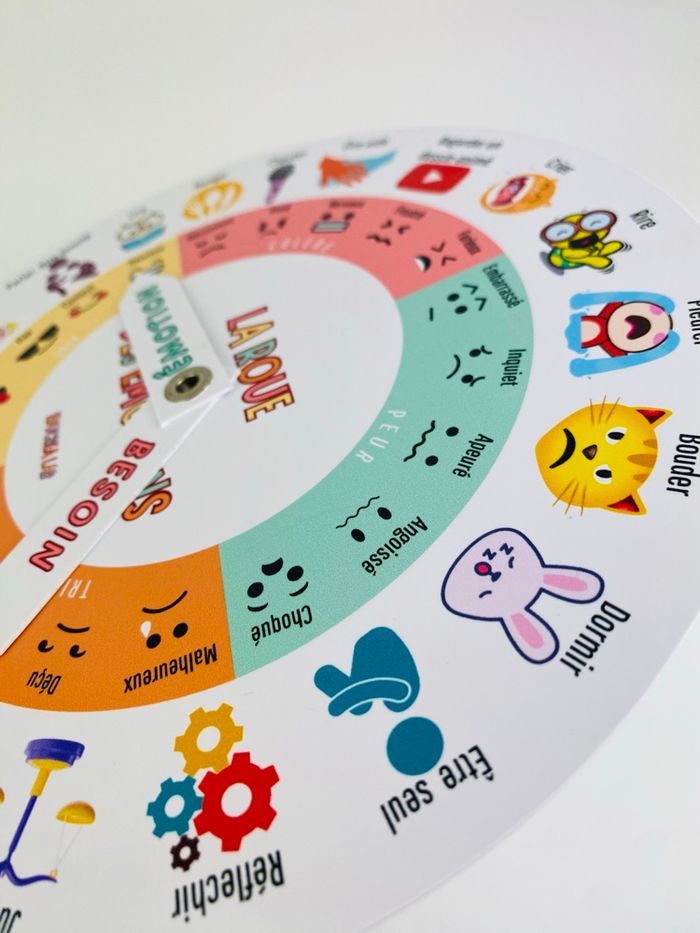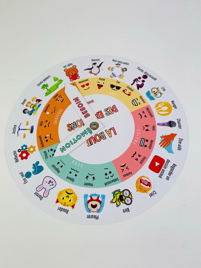 Roue des émotions Produit neuf La Roue des Émotions : L’outil magique pour aider votre enfant à exprimer ce qu’il ressent ! Votre enfant boude sans raison ? Il pique une crise alors que tout semblait aller bien ? 😵‍💫 Et si, au lieu de jouer aux devinettes, vous aviez un outil simple et efficace pour l’aider à mettre des mots sur ses émotions ? 👉 La Roue des Émotions est LA solution pour aider petits (et grands !) à identifier leurs émotions, comprendre ce qui se passe dans leur tête et surtout… exprimer leurs besoins de manière claire. 🔹 Moins de frustrations, plus de sérénité ! 🔹 Un moyen ludique d’apprendre à gérer ses émotions dès le plus jeune âge. 🔹 Idéale pour la maison, l’école ou les professionnels de l’enfance. 💡 Un enfant qui sait dire ce qu’il ressent, c’est un enfant qui évacue son stress et qui développe une meilleure confiance en lui. 📏 Format pratique (20,5 cm), utilisable partout ! 🎁 Faites un cadeau à votre enfant et à toute la famille ! Commandez La Roue des Émotions dès maintenant et transformez les crises en moments de dialogue. Créativement vôtre 😊 Attention : Ceci n'est pas un jouet à utiliser sous la surveillance d'un adulte
