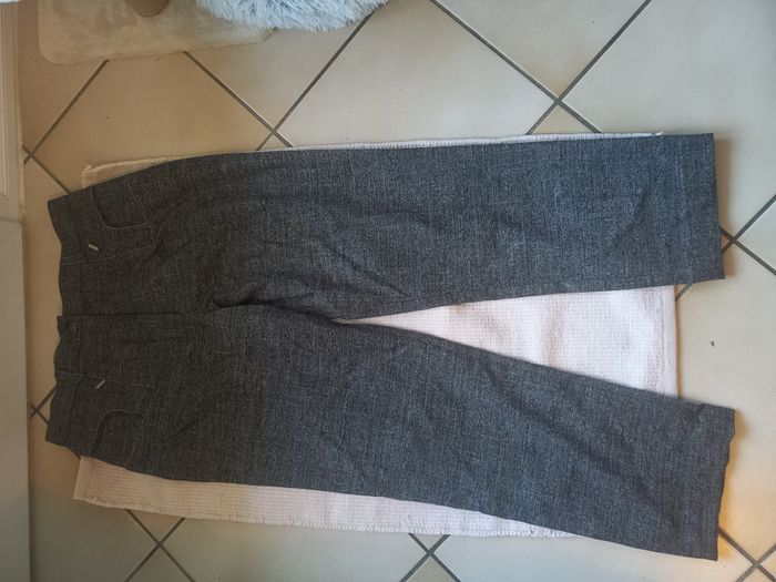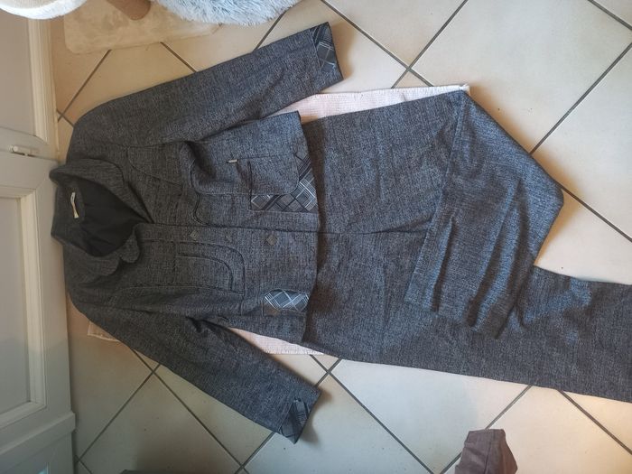 Superbe ensemble tailleur Christine Laure, élégant et intemporel, idéal pour le travail, une cérémonie ou une occasion habillée. 🔹 Marque : Christine Laure 🔹 Taille : 44 🔹 Composition : veste + pantalon assorti 🔹 Couleur : gris chiné avec jolis détails contrastés 🔹 État : très bon état, soigneusement entretenu, aucun défaut à signaler 💎 Détails qui font la différence : Veste structurée avec belle coupe flatteuse (avec épaulettes) Jolis empiècements à motifs sur les poches et les manches Boutons décoratifs élégants Pantalon assorti confortable et chic Ensemble de qualité, finitions soignées (signature Christine Laure) 📏 Dimensions (à plat) : ➡️ Veste : Épaules : 44 cm Longueur : 62 cm ➡️ Pantalon : Taille : 44 cm Entre-jambes : 72 cm Longueur totale : 98.5 cm 📦 Envoi rapide et soigné ❓ N’hésite pas à me contacter pour toute question ou photo supplémentaire ✨ Une belle opportunité d’acquérir un ensemble de marque à prix doux !