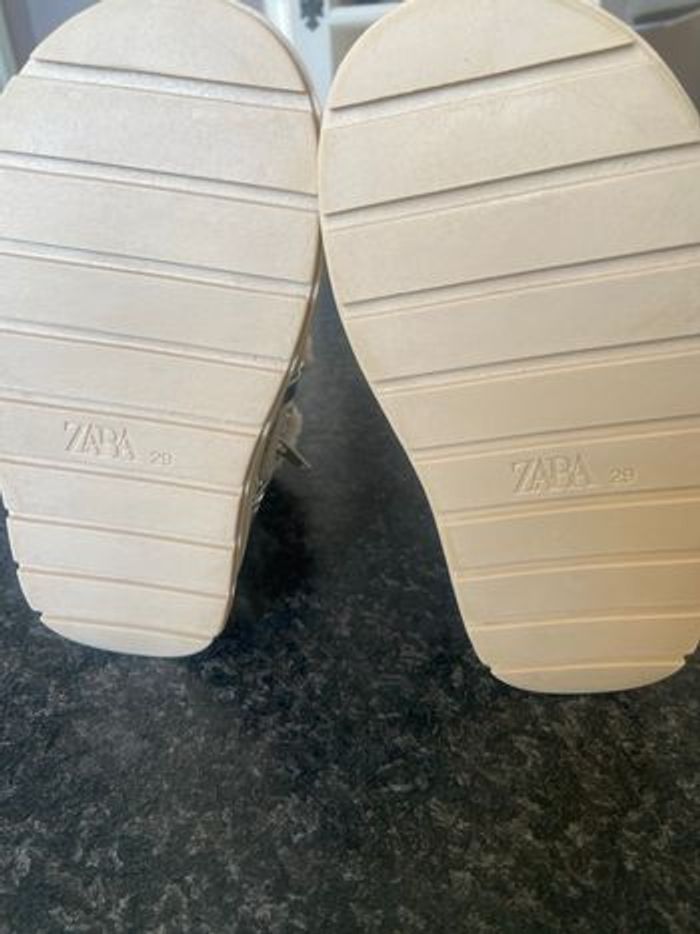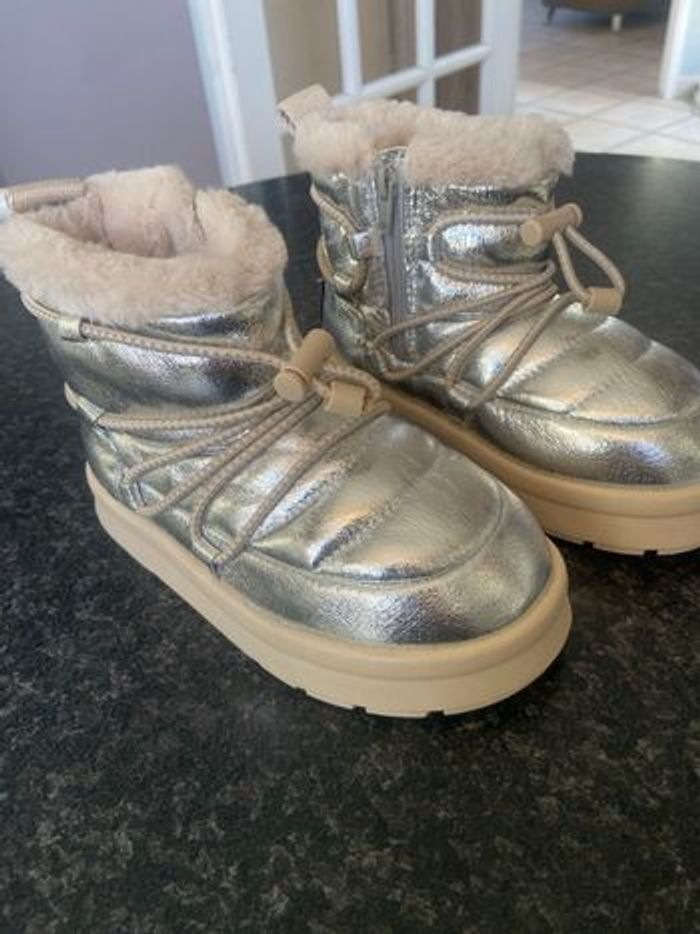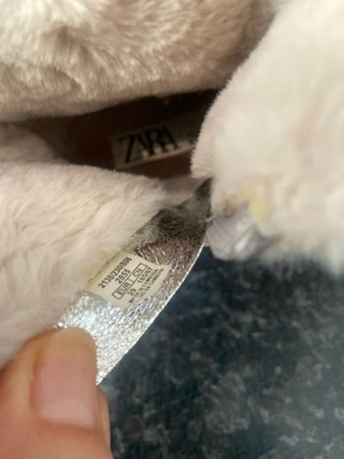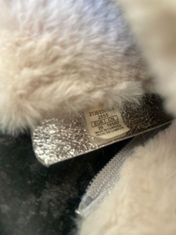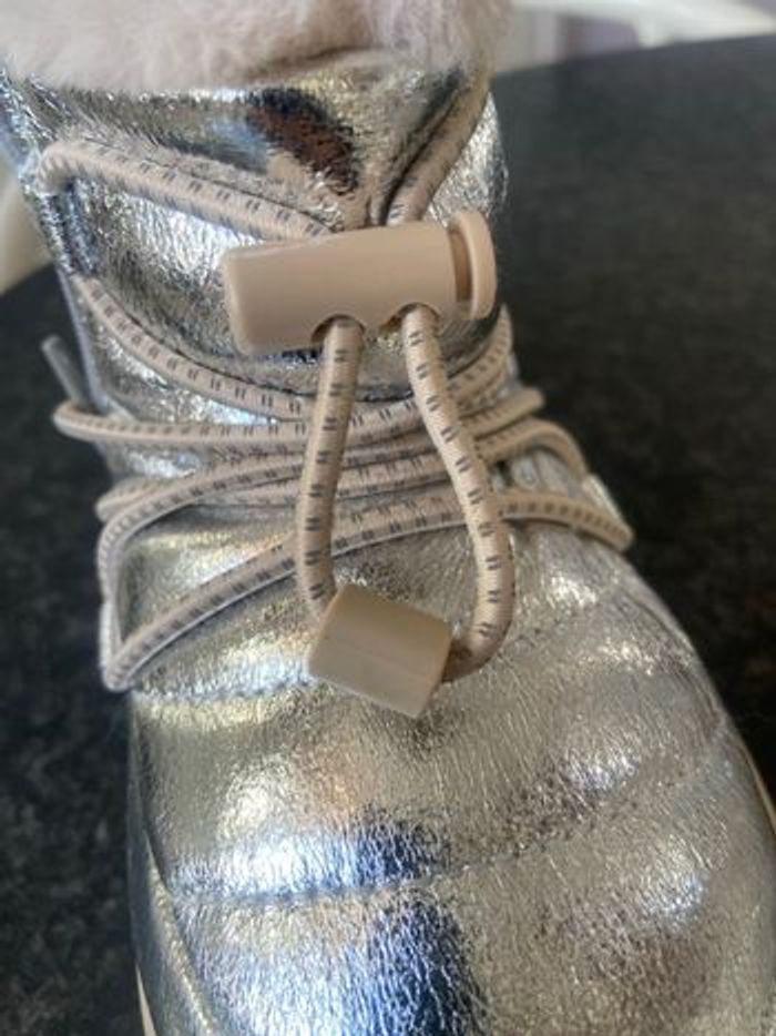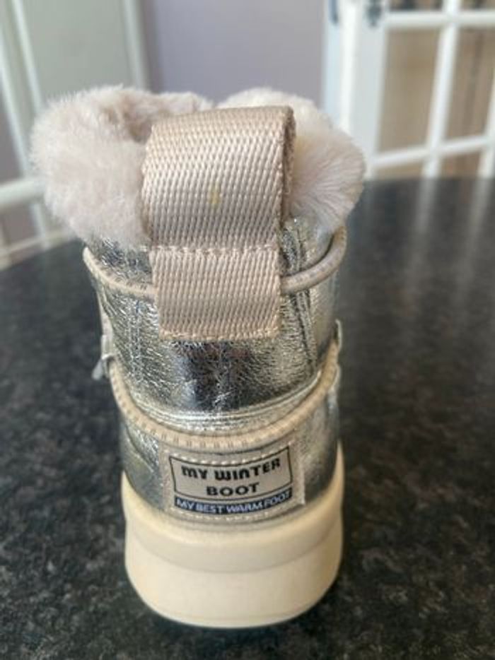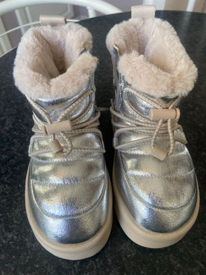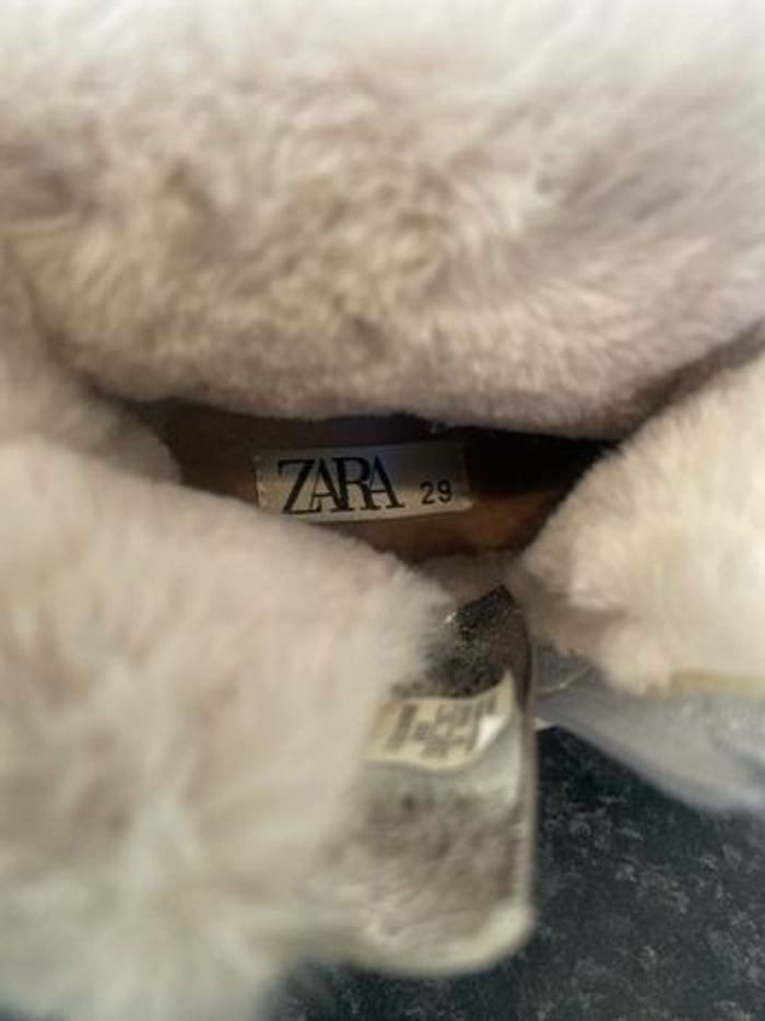 Bottines d hiver, dessus argenté, fermeture intérieur,lacet de serrage ,languette d enfilage arrière,pointure 29, marque Zara , neuves,acheté 45e