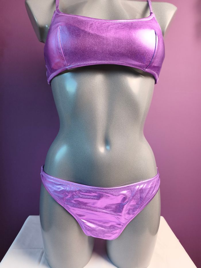 Maillot de bain 2 pièces violet métallisé marque UNDIZ – Taille 38 M - photo numéro 1