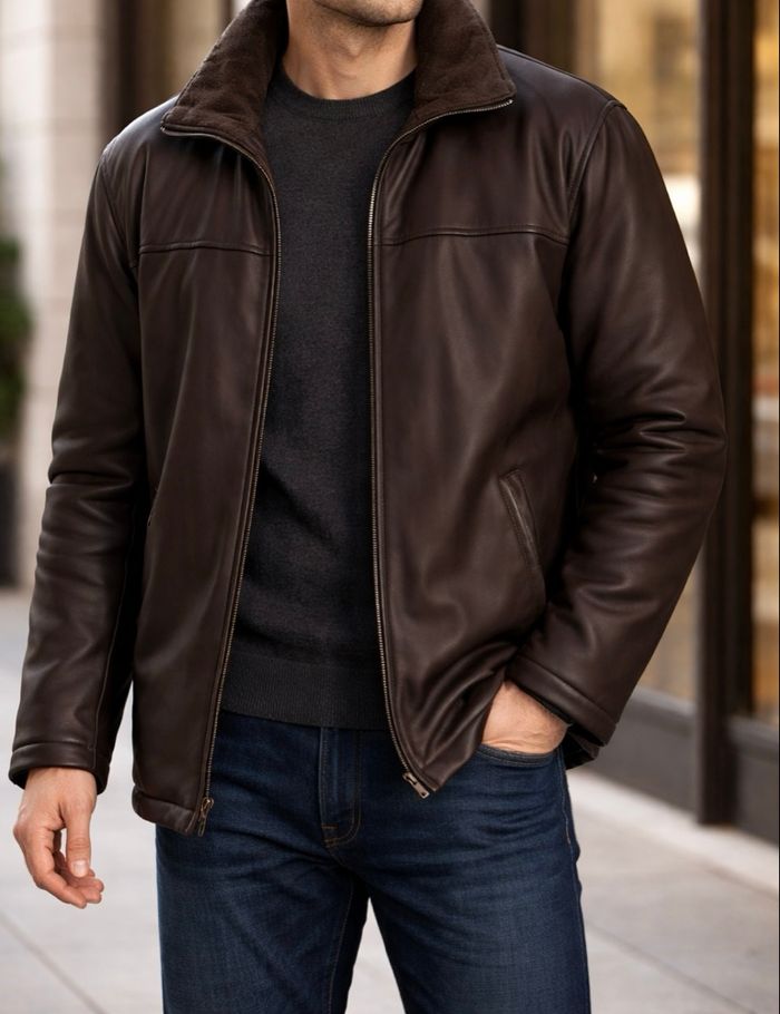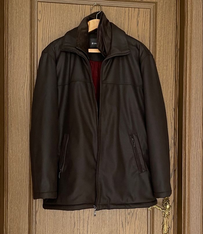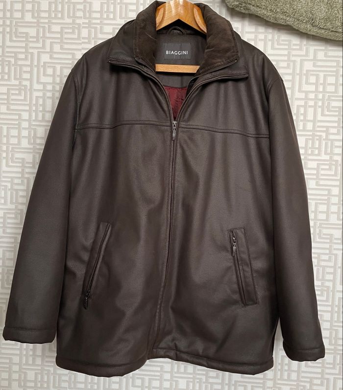 Manteau brun foncé marque Biaggini 2 poches intérieur. Hauteur 80 cm - largeur sous aisselles 67 cm Le col velours est amovible Épais et chaud Taille 52