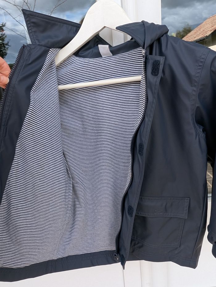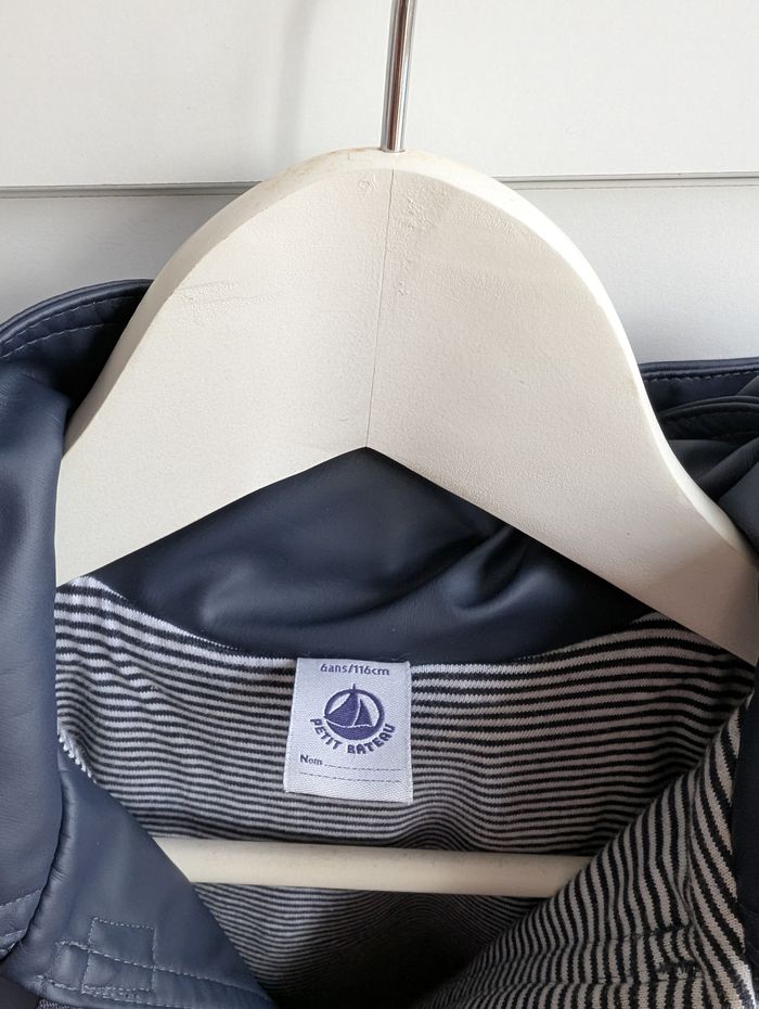 Ciré iconique mixte Petit bateau 6 ans. Bleu marine. En très bon état. Micro griffure sur une poche.