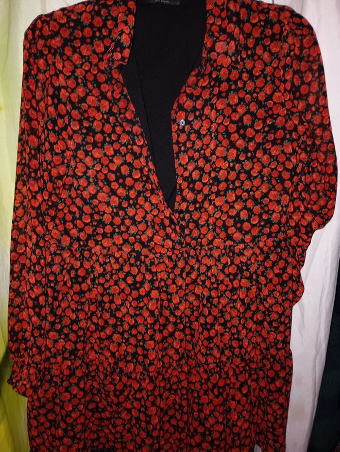 Robe manche longue courte a motif fleur