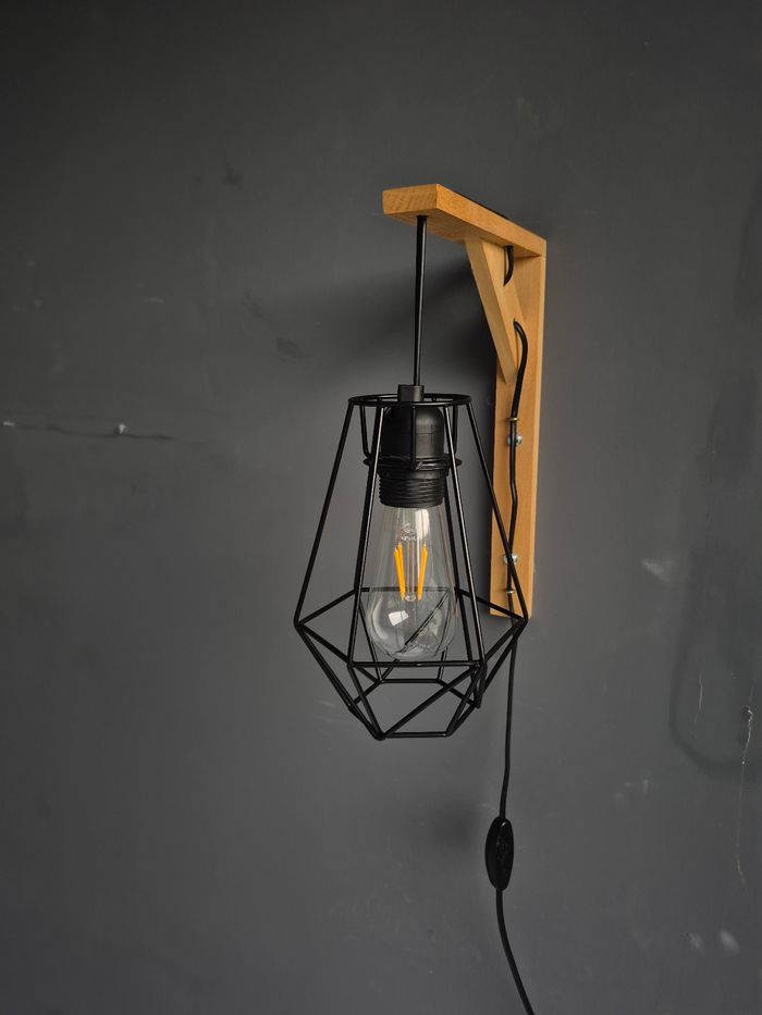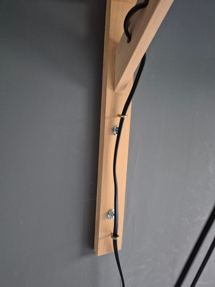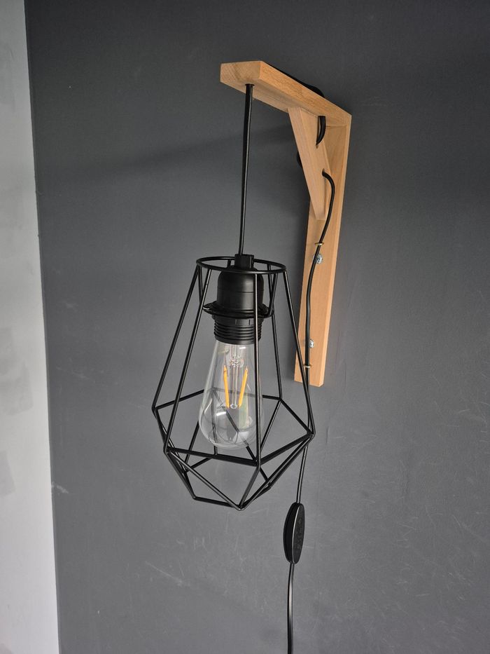 En parfait état Avec interrupteur et prise 2 branches En métal avec socle en bois Socle maintenu dans le mur par 2 vis fournies Vendues sans ampoule Actuellement en vente 115,00€ pièce sur Leroy Merlin
