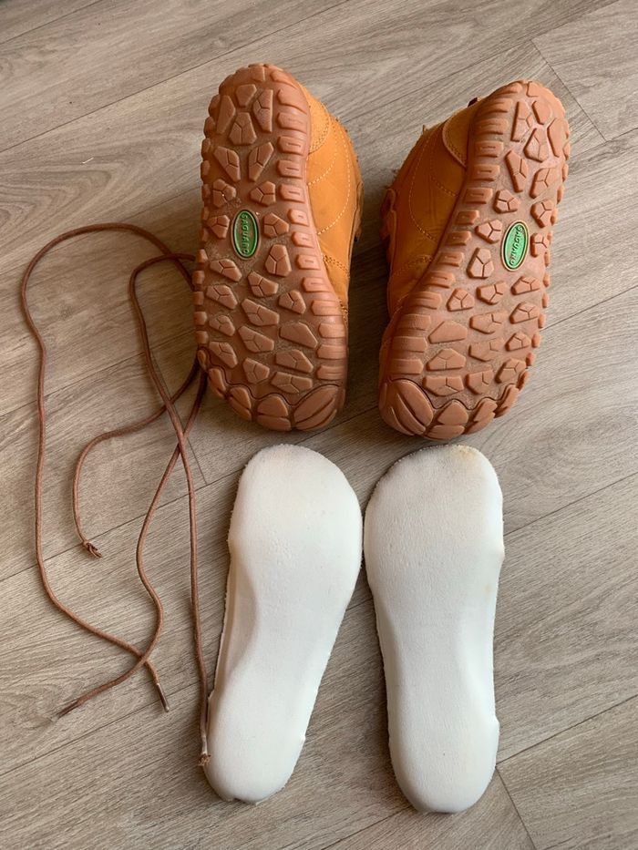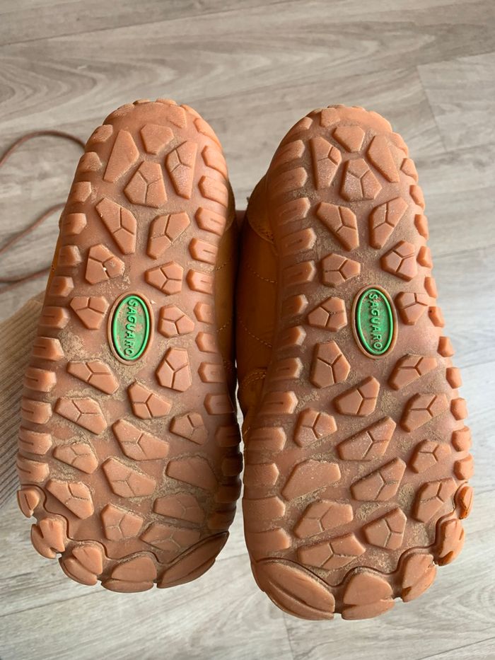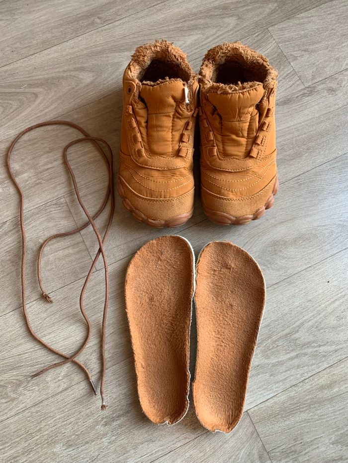 Une paire de baskets fourrées de la marque Saguaro Taille 30 (voir mesures sur les photos) Couleur marron Lavées et prêtes pour un nouveau tour ! En très bon état (pas de tache, pas de trou) Chaussures barefoot