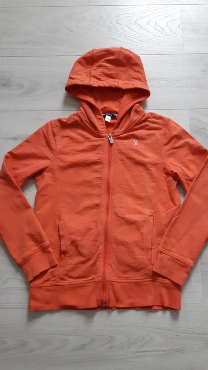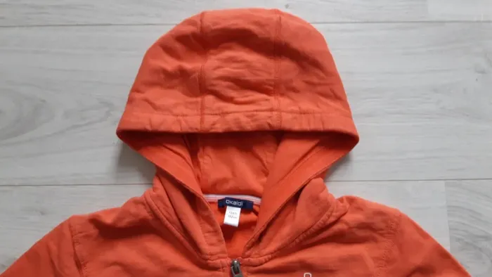 Gilet à capuche zippé Okaïdi, taille 12 ans. Couleur orange. 100% coton. En bon état général, porté, pas de trous ni de tâches. Capuche intégrée, fermeture éclair fonctionnelle. Matière confortable, idéal pour l’école ou les sorties. 📦 Envoi soigné et rapide