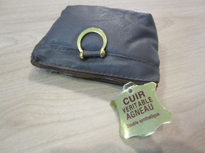 Porte monnaie en cuir d'agneau à zippe - Marron - Neuf - 11 x 7 cm - photo numéro 1