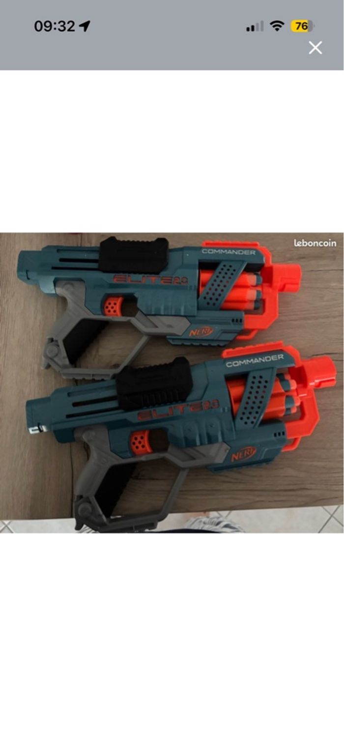 À vendre deux pistolets nerfs (servis 1 fois) En excellent état avec des munitions (8/pistolets) Je suis à la recherche d’autre recharge Le prix indiqué est pour les deux Les nerfs peuvent être vendus séparément