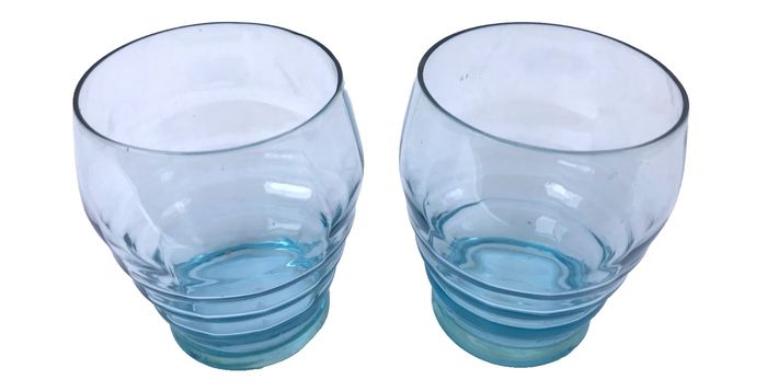 Art déco Années 1930  2 verres  Verre bleu turquoise transparent
