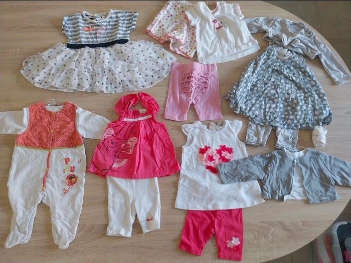 Lot 3 mois fille été printemps comprenant - 1 pyjama léger - 4 leggings courts - 2 gilets - 1 paire de chaussettes - 2 robes dont 1 Absorba - 1 short - 2 T shirts - 1 tunique Disney Le tout de bon état à très bon état