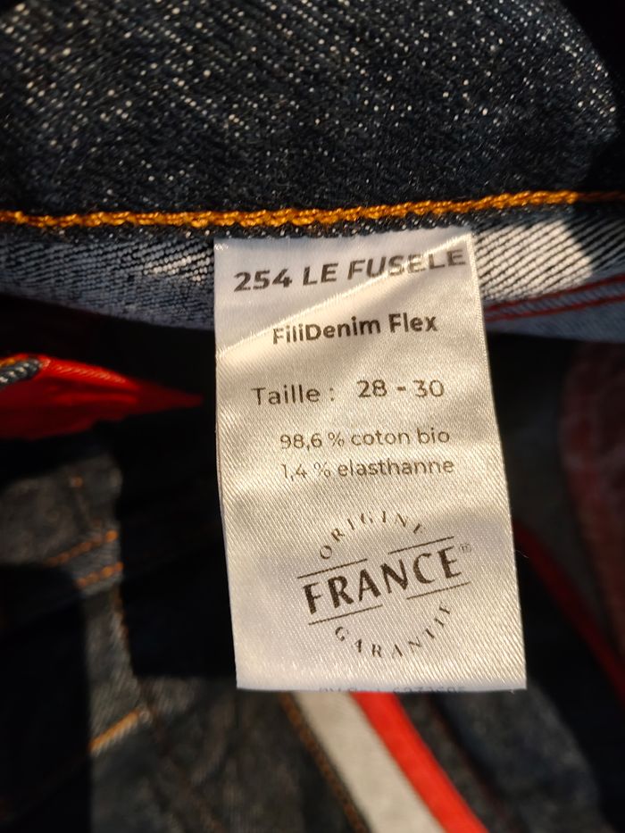 Le fuselé 254 de la marque 1083 est un jean slim avec une taille haute il est filé teint tissé et confectionné en France de plus ce jean est en coton bio, élastane extensible et certifié origine France garantie
