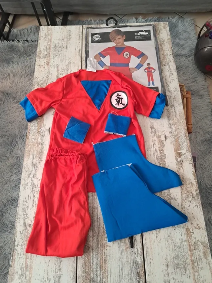 Je vends ce superbe cosplay inspiré de Sangoku, en très bon état, idéal pour carnaval, anniversaire, déguisement ou jeu à la maison !