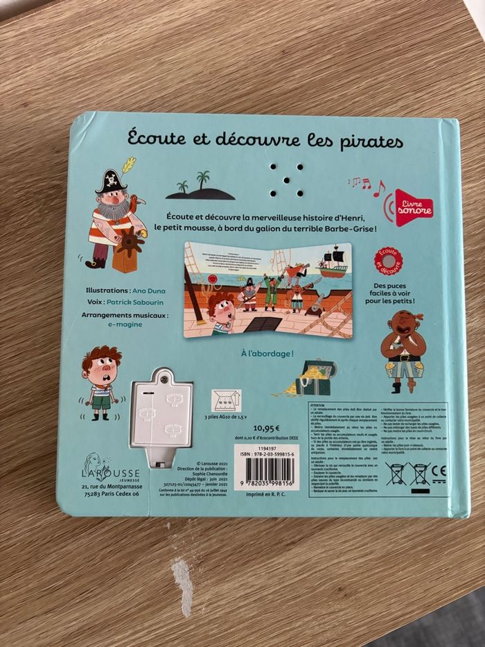Livre sonore Écoute et découvre les pirates, en très bon état. Fonctionne piles incluses.