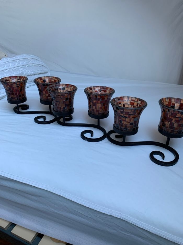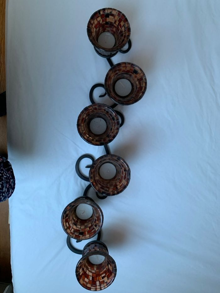 Centre de table 6 photophores en mosaïque Base en fer forgé Utiliser mais reste en bon état
