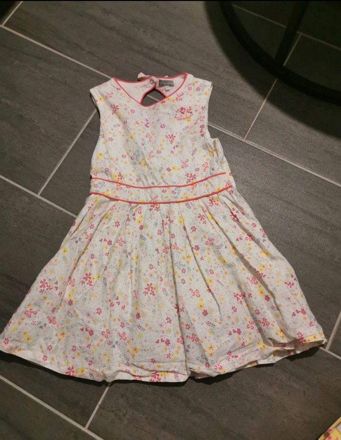 Robe été sergent major blanche à motif fleuri 7 ans
