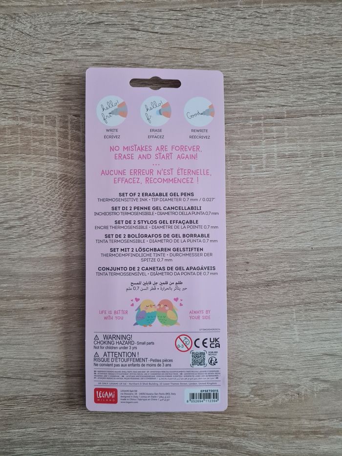 Set fermé et scellé de 2 stylos effaçables "better together" legami Saint Valentin 2026.