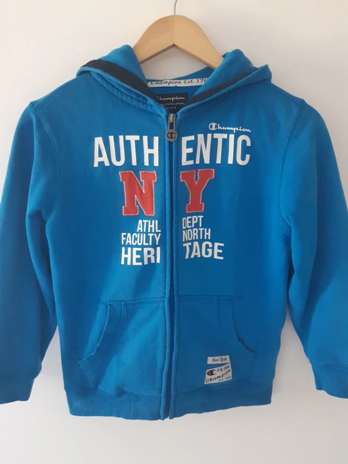 Sweat zippé à capuche Champion bleu – 10 ans – Très bon état - photo numéro 1