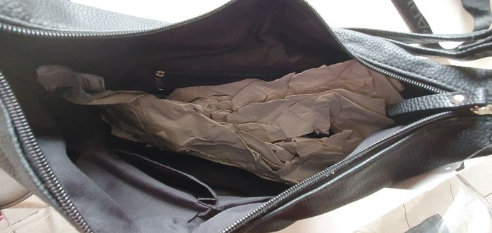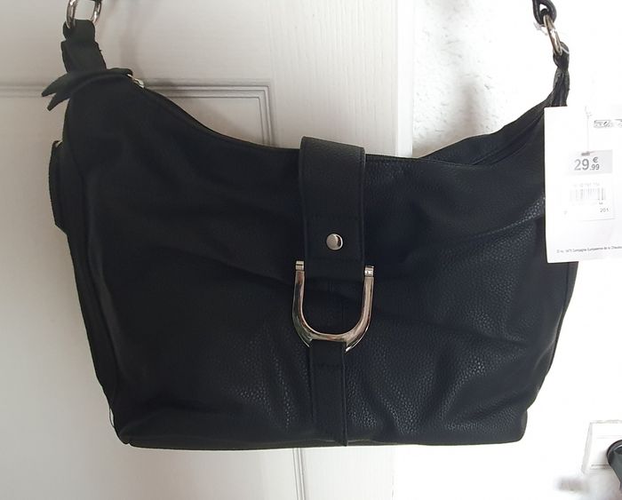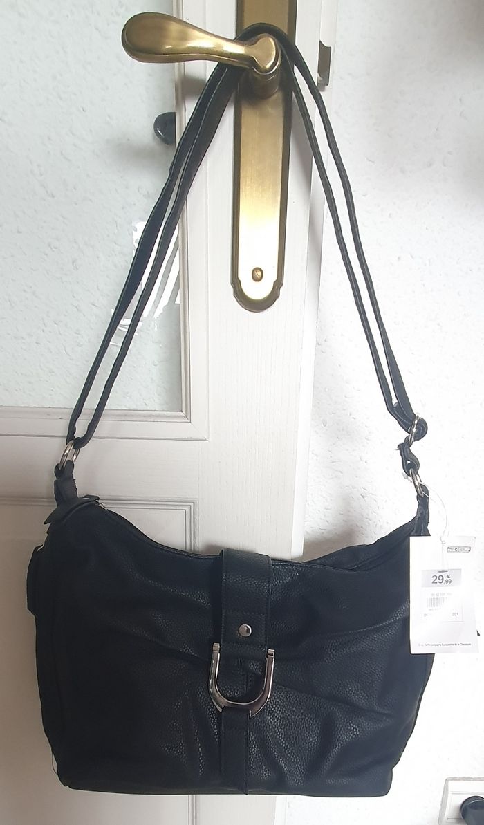 Sac à mains La Halle Coloris noir Porté épaule Anse réglable En synthétique, effet grainé 2 poches sur les côtés A l'intérieur, une poche centrale et une poche latérale interne avec fermeture éclair + emplacement pour portable Fermeture du sac par fermeture éclair + rabat Environ 41 cm de large et 24 cm de haut Neuf, je l avais acheté à La Halle mais je ne m'en suis jamais servi