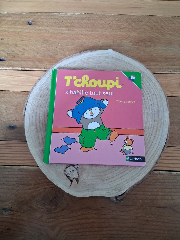 Livre T'choupi l'ami des petits " T'choupi s'habille tout seul " en état satisfaisant, traces d'usages, réparer avec du scotch. Beaucoup servi .