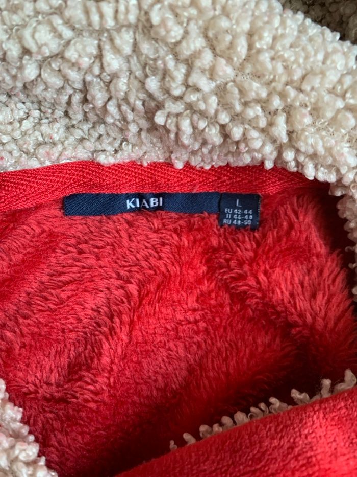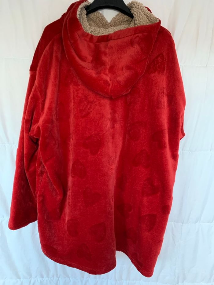 Sweat plaid à capuche Dessin cœur A signaler : petit trou sur la poche ( photo 3) Seule la Capuche est doublée fausse fourrure Taille L Kiabi Longueur 78 cm