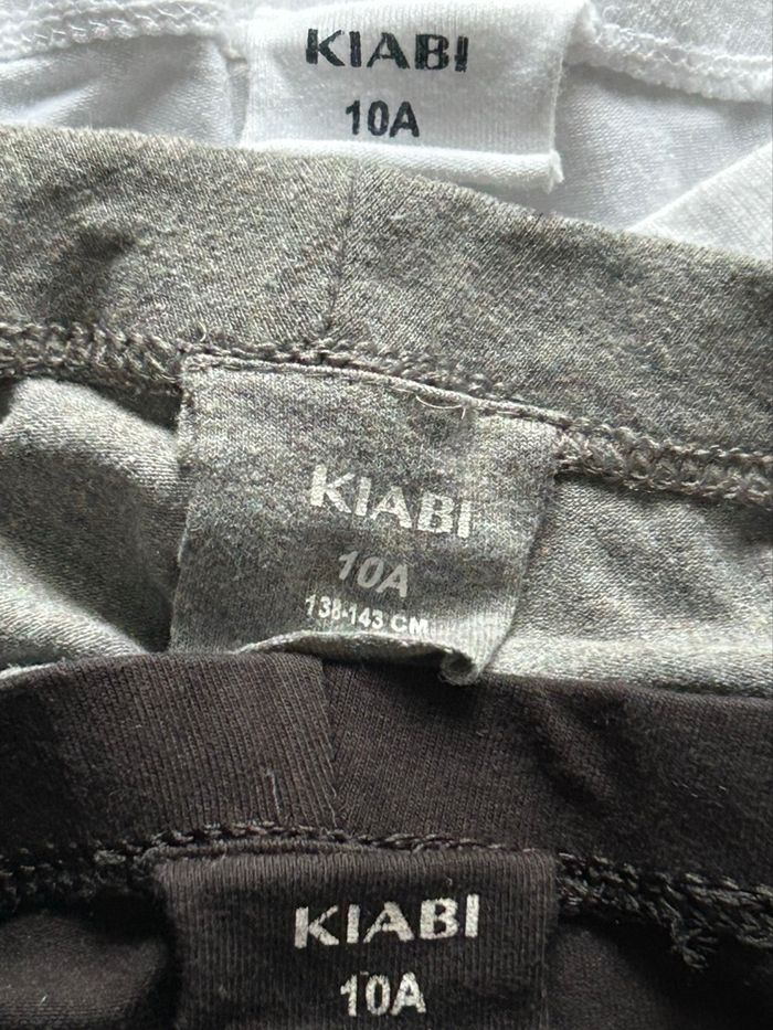 lot de 3 leggings longs pour fille de la marque « Kiabi ». Taille 10 ans. -1 gris -1 noir -1 blanc En très bon état car peu portés.