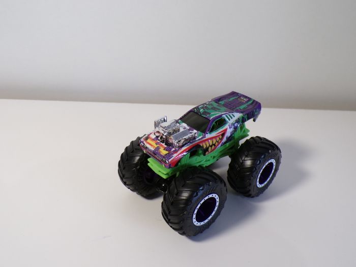 Monster trucks - Hot Wheels - Le Joker, en très bon état (traces d'utilisation sur le moteur, rien de méchant). Mon dressing est trié par catégories, tailles et saisons pour les vêtements. Cliquez sur mes liens # qui sont dans l'annonce. #sonia222404 #jouetenfantsonia222404 #hotwheelsjamsonia222404