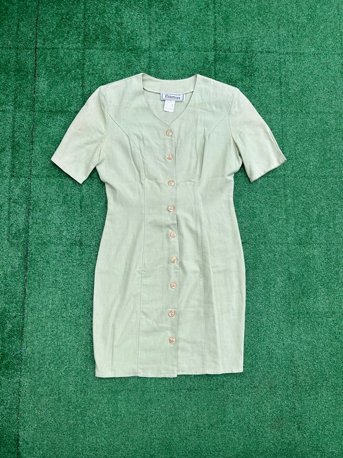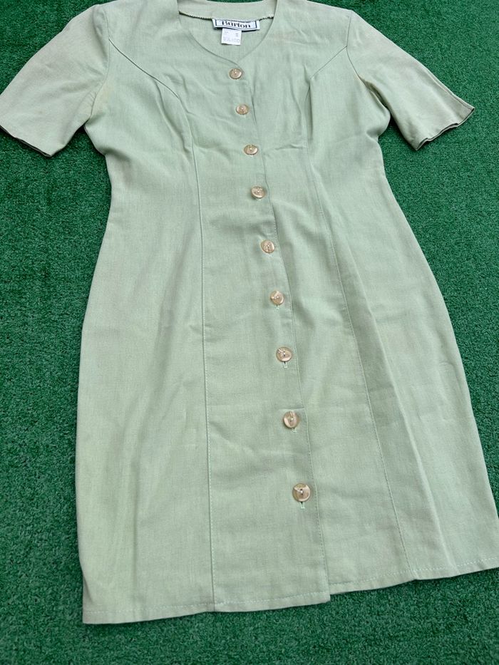 Robe courte Burton vert vintage S T1 80% coton 20% lin Fabriqué France - photo numéro 1