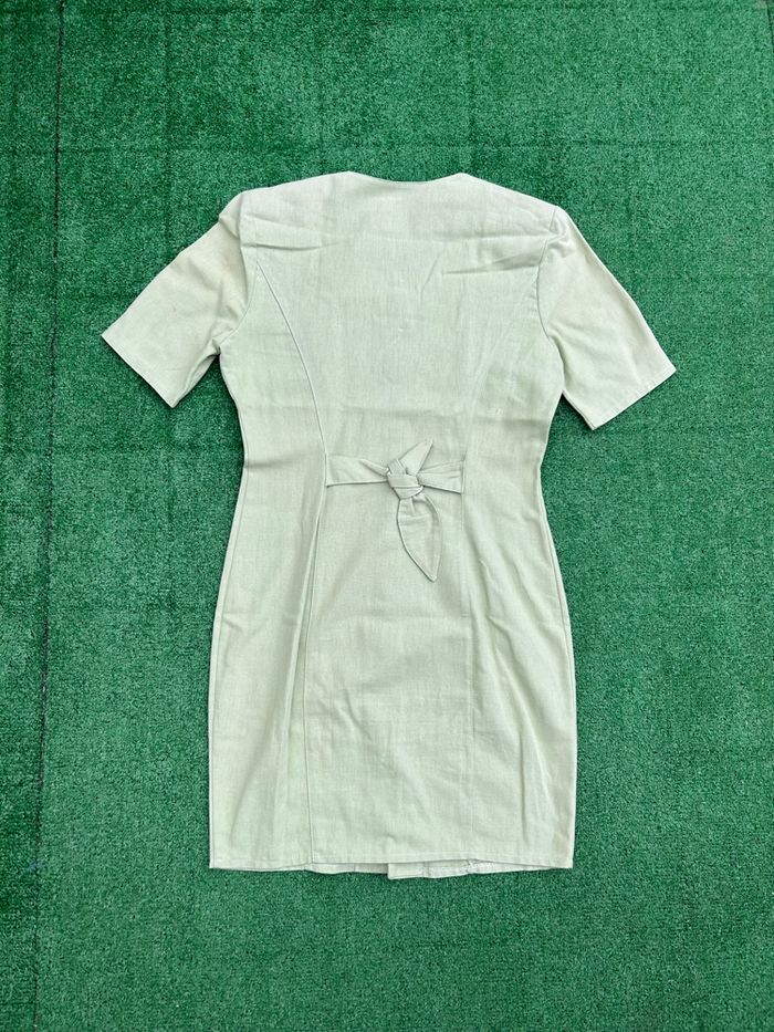 Robe courte Burton vert vintage S T1 80% coton 20% lin Fabriqué France - photo numéro 4