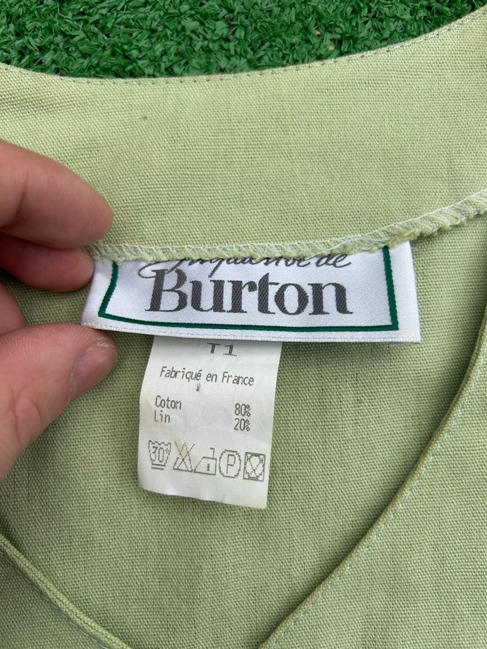 Robe courte Burton vert vintage S T1 80% coton 20% lin Fabriqué France - photo numéro 5