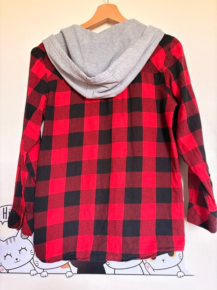 Chemise Levi’s À carreaux rouge et noir , avec capuche grise , style bûcheron - canadien / Canada … 100% coton Taille 14 ans