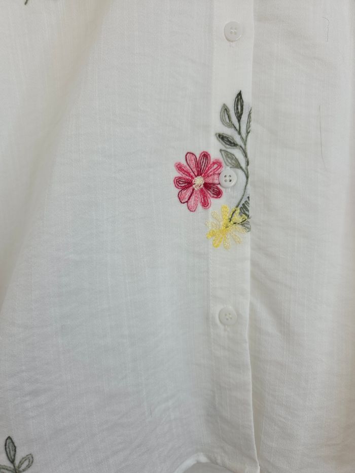 Chemise blanche avec broderies fleurs - photo numéro 1