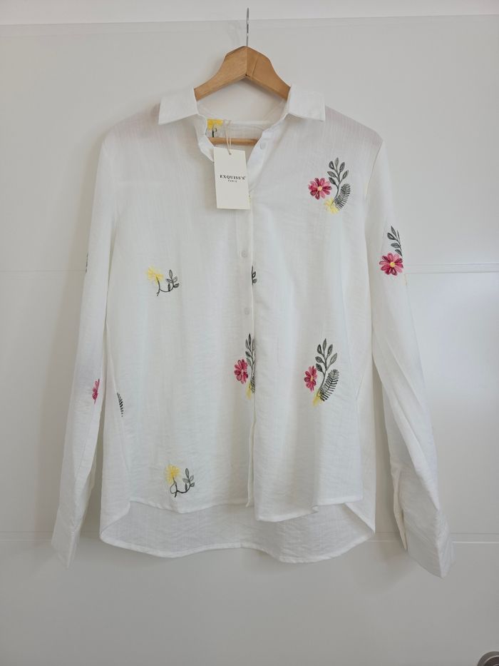 Chemise blanche avec broderies fleurs Taille S neuve avec étiquette