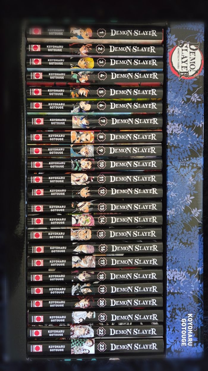 Je met en vente mon Coffret Intégrale de Demon Slayer édition Panini. Les livres ont été lu 1 fois . Acheté 167.67 € en boutique . Pour plus de renseignements venez m'écrire en Message ;)