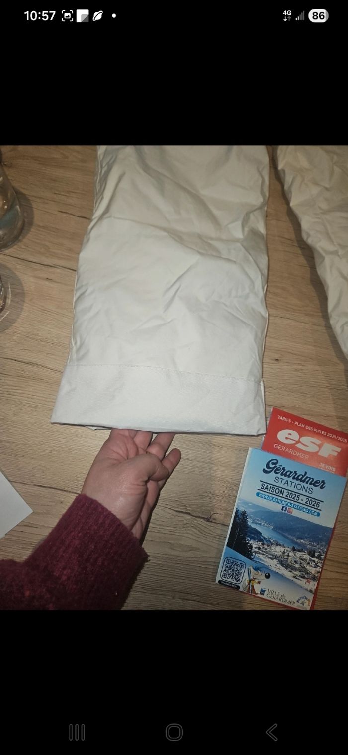 Tbe voir neuve Ma fille l a emmené en colo mais ne l a pas porté.. Entierement doublé en molleton Jamais lavé l antivol le prouve il est intact 2 poches avant Guêtres rose avec antidérapantes Bas du pantalon en tissus plus épais/ renforcé pour limiter usure