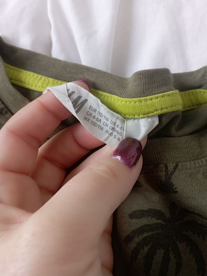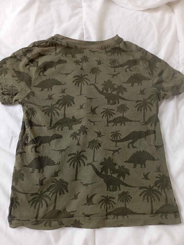 Tee shirt manches courtes kaki dinausore H&M 4/6 ans 2€