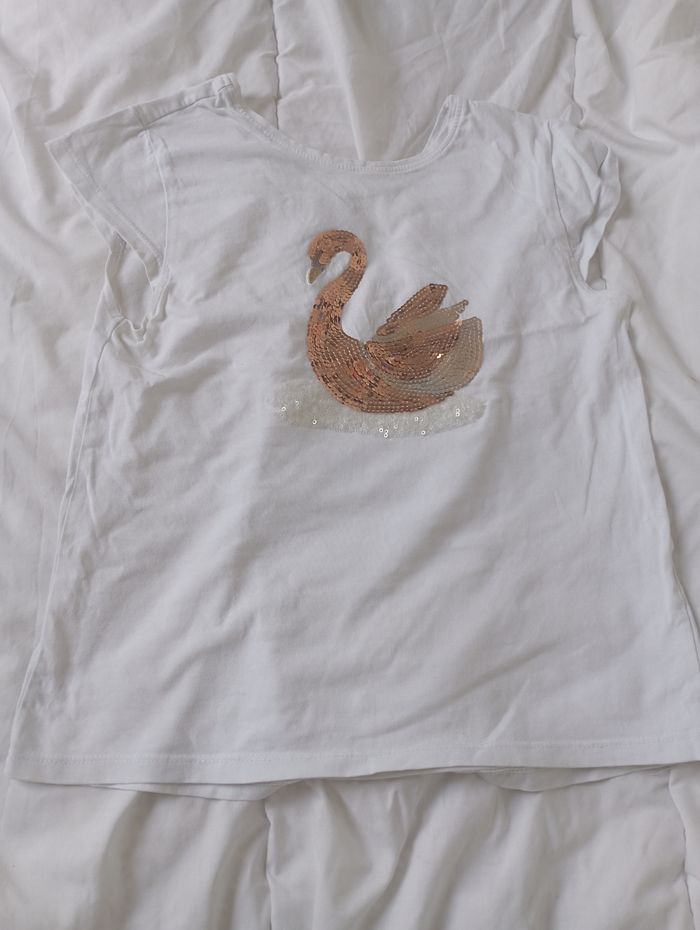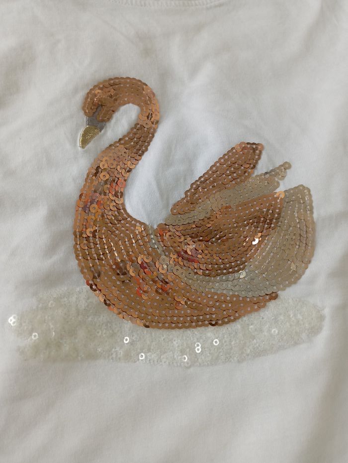 Tee shirt manches courtes blanc avec cygne en beabs tape à l'oeil 14 ans 2€5 - photo numéro 1
