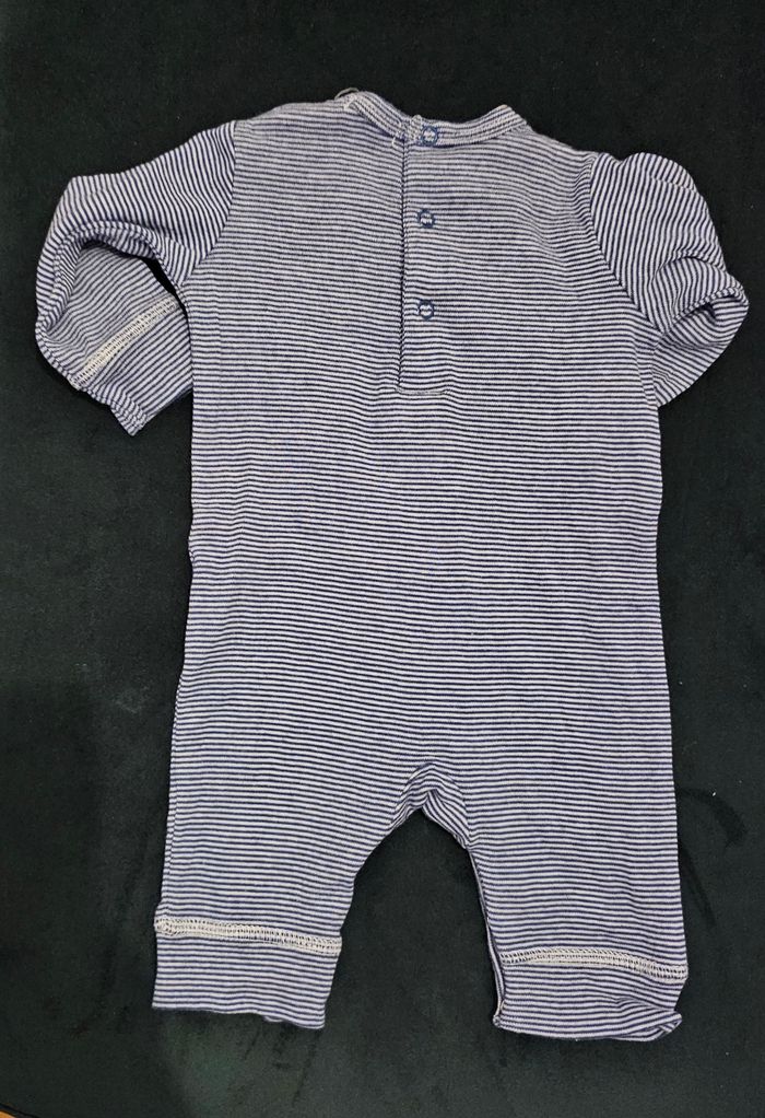 Tres bon etat. 100% coton. Ouverture en bas pour facilier le change et en haut pour faciliter l enfilage.