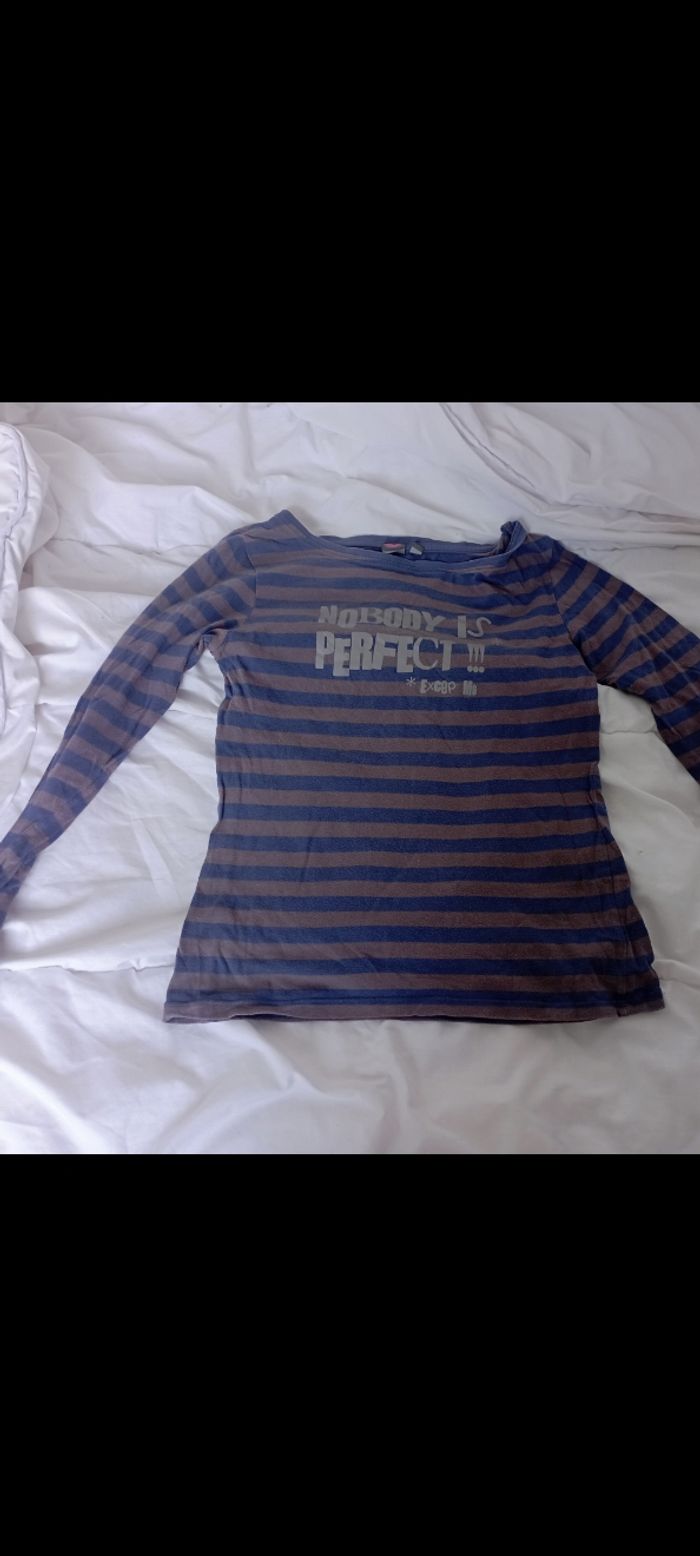 Tee shirt manches longues rayé gris/marine Bilook 14 ans 1€ - photo numéro 1