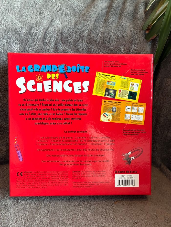 Jeu scientifique La grande boîte des sciences Kit complet et absolument neuf jamais utilisé (il traîne dans le placard : je souhaite lui trouver un heureux propriétaire) 30 expériences amusantes Edition de France Loisirs Carnet fourni Boîte impeccable Envoi soigné #stefetjuju51jeux maison non fumeurs bien d’autres choses dans mon dressing de nouveaux articles très régulièrement nombreux # dans mon profil pour faciliter vos recherches merci pour votre visite et belle journée ☺️ #jeu #scientifique #enfant #experience