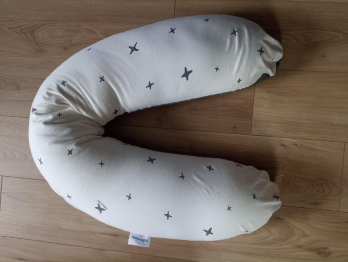 Coussin de grossesse Babymoov en bon état, acheté l'an dernier chez Aubert à 80 euros. Housse en coton bio, intérieur en micro billes rechargeables