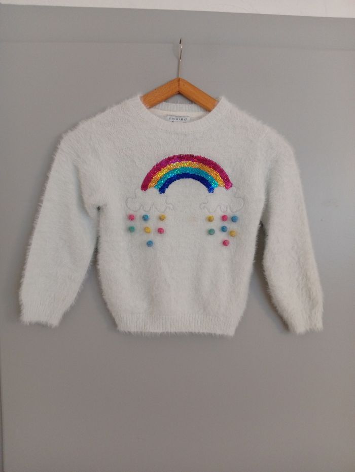 Pull blanc arc-en-ciel 7ans  - photo numéro 1