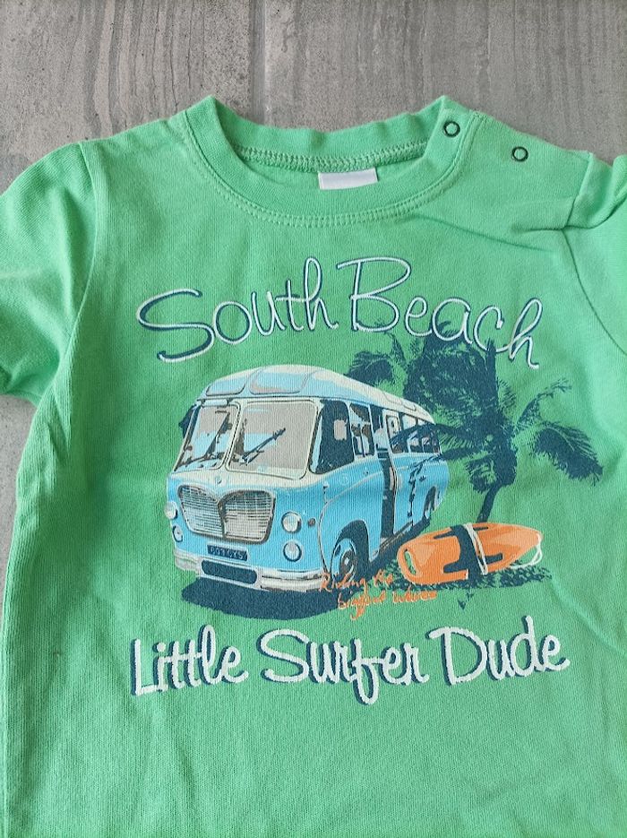 Bonjour, Je vends ce t-shirt manches courtes "South Beach Little Surfer Dude". - Marque: Stummer - Univers : Mixte - Taille: 9 mois 74 cm - Matière: 100% coton Excellent état très peu porté N'hésitez pas à me contacter pour plus d'informations. Envoi rapide et soigné