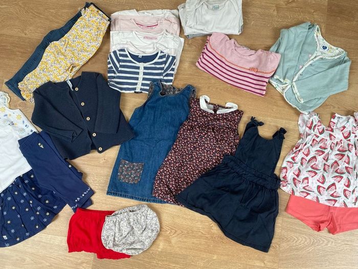 Différentes marques . Kiabi , sergent major … bodies , gilet , robes , bloomer , jupe …certains sont en très bon état et d’autres portés