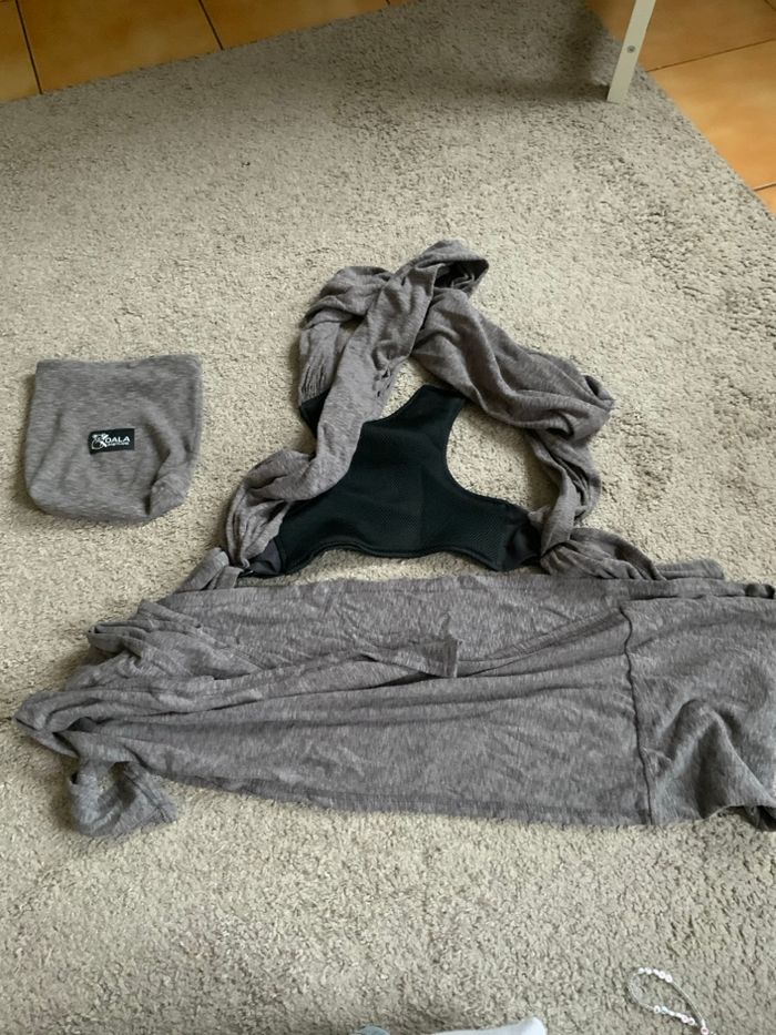 Écharpe de portage, koala, babycare prix, en très bon état, avec petite pochette de transport. Convient de la naissance jusqu’à 9 kg environ. Deux positions de portage adapté au nouveau-né et bébé. Facile à enfiler et confortable pour porter bébé en toute sécurité.