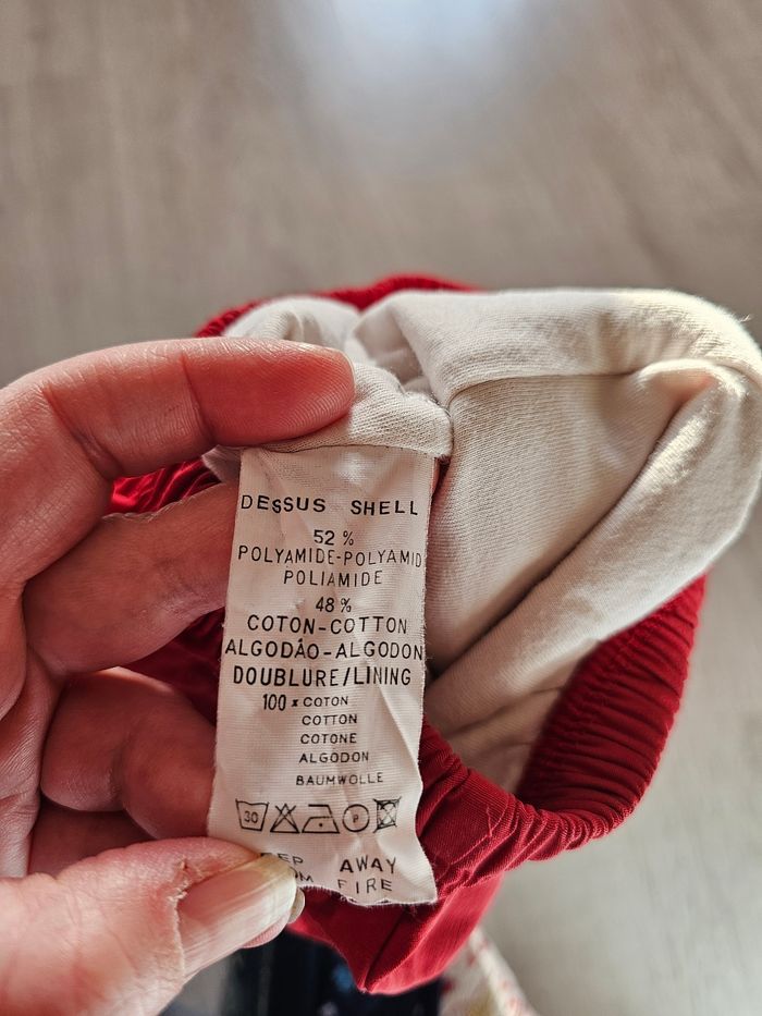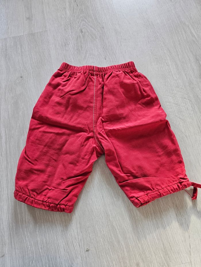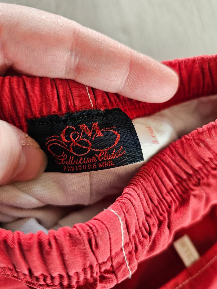 Pantalon matière effet imperméable. Le pantalon est en très bon état seulement il manque un lien de serrage en bas de la jambe gauche. Il est malgré tout possible de remplacer le lien ou de retirer le second. Taile 3 mois